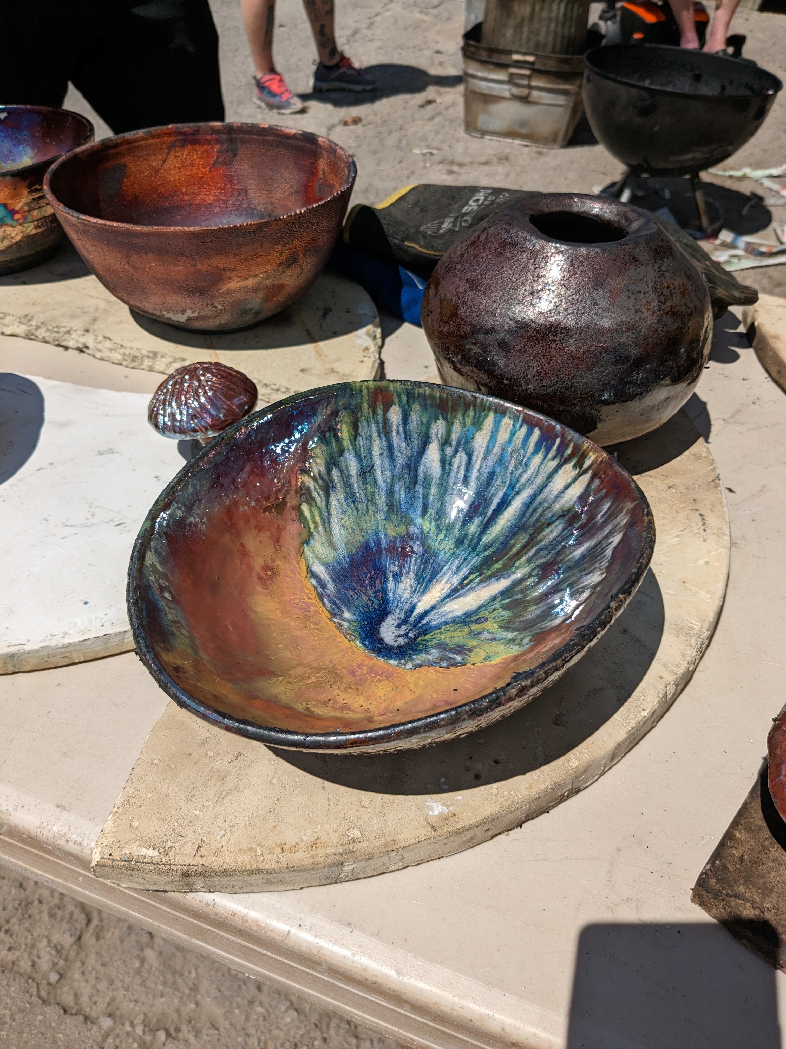 Raku Workshop Includes: 10lbs of raku clay, one drop in studio pass, access to studio raku glazes (3+ options) & bisque firing of 3 pieces- Plus a full day of Raku firing, of course!